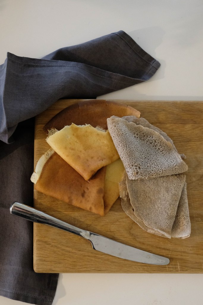 J’adore les crêpes, j’ai toujours aimé ça et ne m’en lasse pas même si cela me vaut parfois quelques railleries depuis que je suis adulte! Mais ces dernière années je préférais me régaler au restaurant, car j’étais souvent déçue de la pâte que je faisais à la maison. Cette époque est terminée depuis que j’ai découvert ces deux recettes, une pour les galettes salées, l’autre pour les crêpes sucrées dans le magnifique livre de Bertrand Larcher Breizh Café . Une petite perle avec des recettes aux croisements des cuisines bretonnes et niponnes qui met à l’honneur les produits du terroir, qu’on retrouve pour la plupart chez les producteurs suisses.