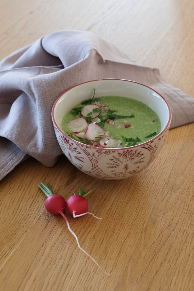 Servir frais avec quelques rondelles de radis et des feuilles de menthe.