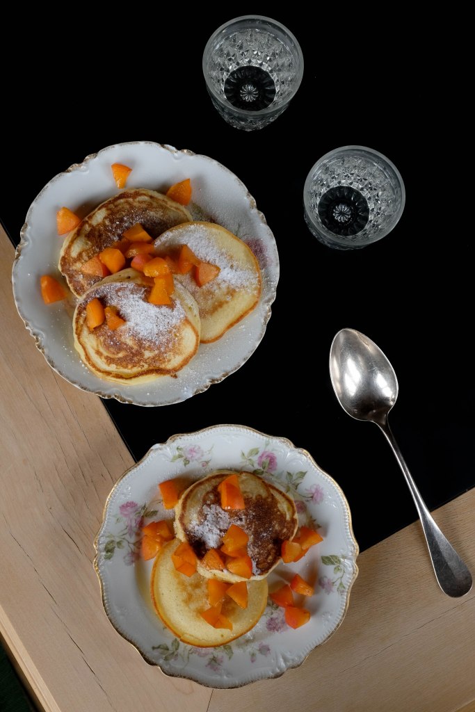 Faire chauffer un peu de beurre ou d’huile neutre dans un poêle. Y déposer la quantité de pâte souhaitée (je mets 3 pancakes par poêle) et laisser cuire sur feu doux avant de retourner. Les pancakes doivent être dorés et cuits à coeur.