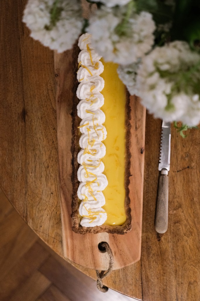 Cette recette est prévue pour une petite plaque ronde de 20 centimètres de diamètre ou allongée comme sur la photo. Si vous pensez utiliser une plaque à tarte classique doublez les quantités pour la pâte. Le lemon curd est compté de manière généreuse, il devrait y en avoir assez.