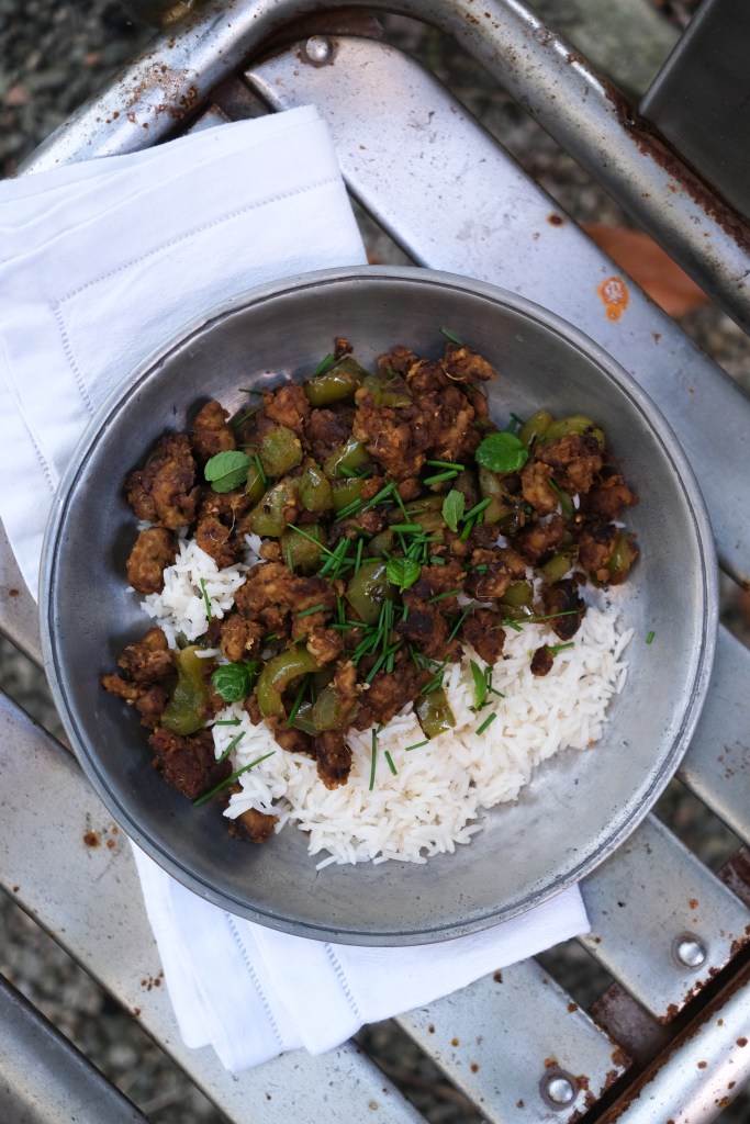 Servir avec le riz et des herbes fraîches.