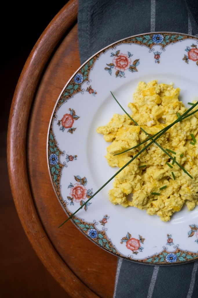 Une alternative végétale aux oeufs brouillés. Délicieux seul, encore meilleur sur une tranche de pain grillé.