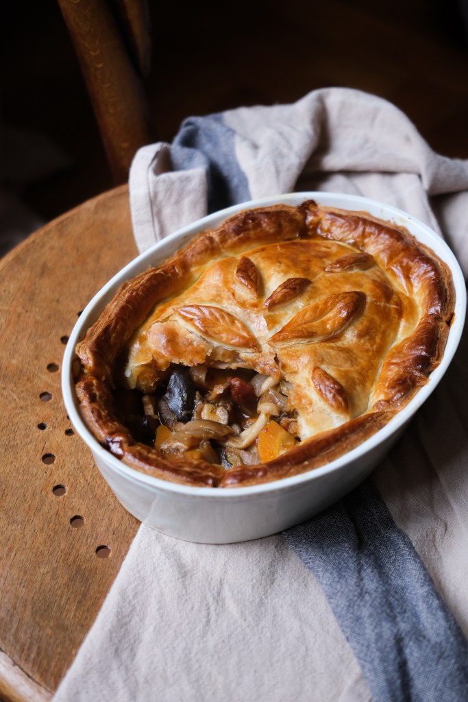 C’est un classique de la comfort food britannique. Cette tourte à la bière deviendra bientôt aussi un classique de vos soirée d’hiver. La version classique contient généralement du boeuf, je vous en propose ici une option végétarienne aux champignons. A servir seul ou avec une bonne purée de pommes de terre maison.