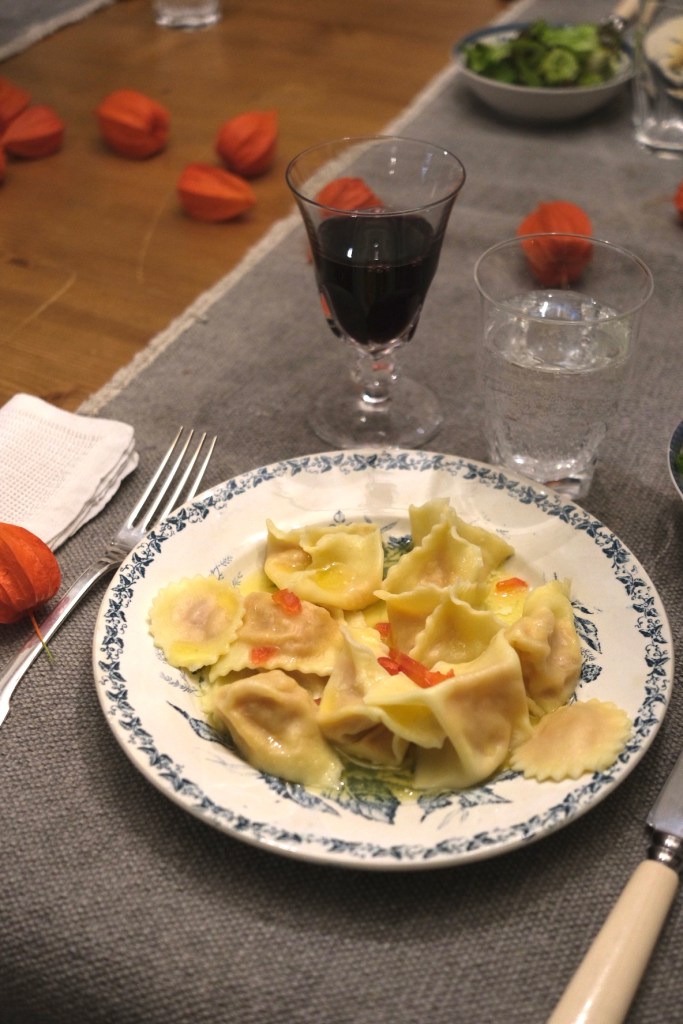 Cette recette traditionnelle de Mantoue donne un twist aux ravioli à la courge, en enrichissant la farce d’amaretti et de mostarda, fruits confits italiens à la saveur douce et piquante. J’adore ces goûts surprenants mais équilibrés. Ils se suffisent d’ailleurs à eux mêmes et n’auront besoin que d’un peu de beurre et de parmesan en accompagnement.
